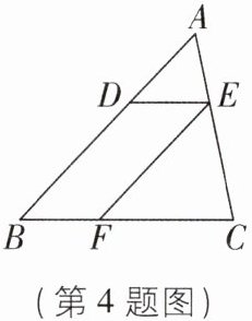 4 如图,已知在 $ \triangle A B C $ 中,点 $ D $,$ E $,$ F $ 分别是边 $ A B $,$ A C $,$ B C $ 上的点,$ D E // B C $,$ E F // A B $,且 $ A D : D B = 3 : 5 $,则 $ C F : C B = $( )