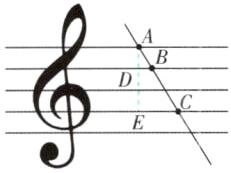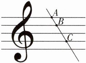 6 [2025 吉林长春质检]如图,五线谱是一种记谱法,通过在五条等距离的平行线上标以不同时值的音符及其他记号来记载音乐。同一条直线上的三个点 $ A $,$ B $,$ C $ 分别在五线谱的三条平行线上,若线段 $ B C = 4 \mathrm { cm } $,则线段 $ A C $ 的长是____。