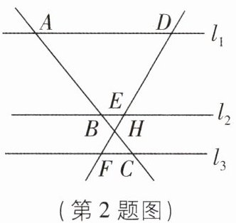 2 [2025 四川广安校级质检]如图,直线 $ l _ { 1 } // l _ { 2 } // l _ { 3 } $,直线 $ A C $ 分别交 $ l _ { 1 } $,$ l _ { 2 } $,$ l _ { 3 } $ 于点 $ A $,$ B $,$ C $,直线 $ D F $ 分别交 $ l _ { 1 } $,$ l _ { 2 } $,$ l _ { 3 } $ 于点 $ D $,$ E $,$ F $,$ A C $ 与 $ D F $ 相交于点 $ H $。如果 $ A B = 5 $,$ B H = 1 $,$ C H = 2 $,那么 $ \frac { E F } { D E } $ 的值等于( )