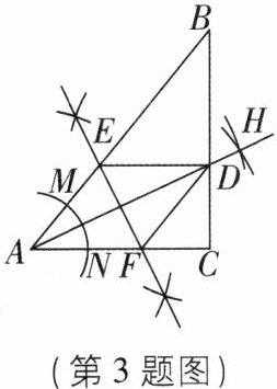 3 [中]如图,在 $ \triangle A B C $ 中,$ \angle C = 90 ^ { \circ } $,$ B C = 9 $,以点 $ A $ 为圆心,适当长为半径画弧,分别交 $ A B $,$ A C $ 于点 $ M $,$ N $,分别以点 $ M $,$ N $ 为圆心,大于 $ \frac { 1 } { 2 } M N $ 的长为半径画弧,两弧交于点 $ H $,作射线 $ A H $ 交 $ B C $ 于点 $ D $,作线段 $ A D $ 的垂直平分线 $ E F $,分别交 $ A B $,$ A C $ 于点 $ E $,$ F $,连接 $ D E $,$ D F $,$ C D = 4 $,下列结论错误的是( )