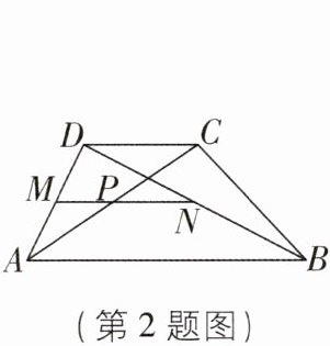 2 [中]如图,四边形 $ A B C D $ 中,$ A B // D C $,$ C D = 4 $,$ A B = 10 $,点 $ M $,$ N $ 分别是边 $ A D $ 和对角线 $ B D $ 的中点,且 $ M N $ 与对角线 $ A C $ 交于点 $ P $,则 $ P N $ 的长为( )