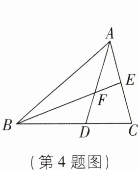 4 [中]如图,$ B E $ 是 $ \triangle A B C $ 的中线,点 $ F $ 在 $ B E $ 上,延长 $ A F $ 交 $ B C $ 于点 $ D $。若 $ B F = 3 F E $,$ B D = 3 $,则 $ D C = $____。