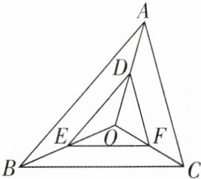 4如图,已知O是$\triangle ABC$内一点,D,E,F分别是OA,OB,OC的中点.求证:$\triangle ABC\backsim \triangle DEF.$