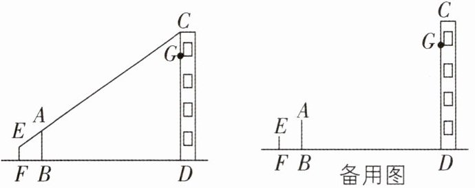(2)小明站在原来的位置,同学们通过移动标杆,可以用同样的方法测得楼 CD 上点 G 的高度 GD = 11.5 米,那么相对于第一次测量,标杆 AB 应该向大楼方向移动多少米?