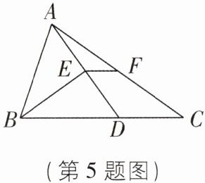 5 [2024 江苏苏州调研]如图,在 $\triangle ABC$ 中,$AC > AB$,点 D 在 BC 上,且 $BD = BA$,$\angle ABC$ 的平分线 BE 交 AD 于点 E,点 F 是 AC 的中点,连接 EF。若四边形 DCFE 和 $\triangle BDE$ 的面积都为 3,则 $\triangle ABC$ 的面积为 ____。