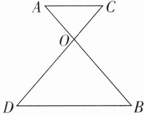 1 [2024 云南中考]如图,AB 与 CD 交于点 O,且 AC // BD。若 $\frac{OA + OC + AC}{OB + OD + BD} = \frac{1}{2}$,则 $\frac{AC}{BD} = $ ____。