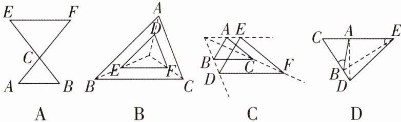 D [解析]只有选项D中的对应点的连线所在的直线不会相交于一点.故选D.
