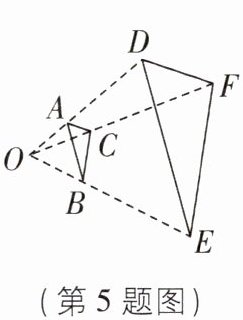 5 如图,$△ABC与△DEF$位似,点O是它们的位似中心,其中$OC:CF= 1:2$,则$△ABC和△DEF$的周长之比是 ( )