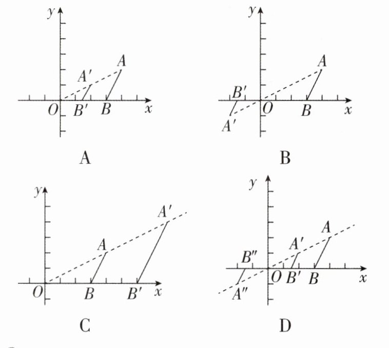 5 [2025 山东潍坊期末] 如图所示,在平面直角坐标系中,有两点 $ A(4,2),B(3,0) $,以原点为位似中心,$ A'B' $ 与 $ AB $ 的相似比为 $ \frac{1}{2} $,得到线段 $ A'B' $。正确的画法是( )