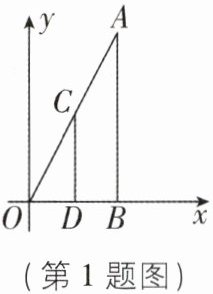 1 如图,在平面直角坐标系中,已知点 $ A(2,4) $,过点 $ A $ 作 $ AB \perp x $ 轴于点 $ B $,以坐标原点 $ O $ 为位似中心,将 $ \triangle AOB $ 缩小为原图形的 $ \frac{1}{2} $ 得到 $ \triangle COD $,则 $ CD $ 的长是( )