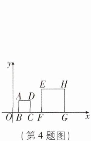 4 [2024 黑龙江绥化质检] 如图,在直角坐标系中,正方形 $ ABCD $ 的边 $ BC $ 在 $ x $ 轴上,其中点 $ A $ 的坐标为 $ (1,2) $,正方形 $ EFGH $ 的边 $ FG $ 在 $ x $ 轴上,且 $ H $ 的坐标为 $ (9,4) $,则正方形 $ ABCD $ 与正方形 $ EFGH $ 的位似中心的坐标是______。