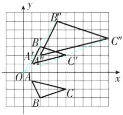 (2)以坐标原点为位似中心在图中的网格中作出 $ \triangle A'B'C' $ 的位似图形 $ \triangle A''B''C'' $,使 $ \triangle A'B'C' $ 与 $ \triangle A''B''C'' $ 的相似比为 $ 1:2 $;