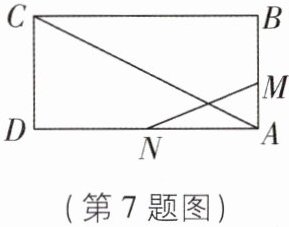 7 如图,矩形ABCD的边AB= 3cm,对角线AC= 3√5cm,动点M从点A出发,沿AB以1cm/s的速度向点B匀速运动,同时动点N从点D出发,沿DA以2cm/s的速度向点A匀速运动.设运动的时间为t s,当t= ______时,△ACD与△AMN相似.