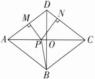 2[2024陕西咸阳秦都区调研,较难]如图所示,四边形ABCD中,AC⊥BD于点O,AO= CO= 4,BO= DO= 3,点P为线段AC上的一个动点.过点P分别作PM⊥AD于点M,PN⊥DC于点N.连接PB,在点P运动过程中,PM+PN+PB的最小值等于______.