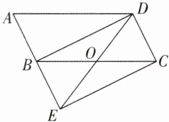 5[2024重庆沙坪坝区调研]如图,将$□ ABCD$的边AB延长至点E,使$BE= AB$,连接DE,EC,BD,DE交BC于点O.