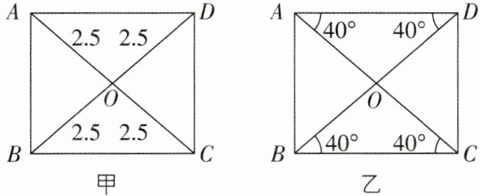 ∴ 甲四边形是矩形。在乙四边形中,由题意易得OA=OD,OB=OC,而OA,OB的数量关系未知,