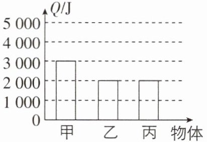 1 甲、乙两物体质量都为1kg,丙物体质量为2kg,三个物体温度都升高$1^{\circ }C$,吸收的热量如图所示,则甲、乙、丙的比热容大小关系是 (