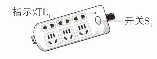 5 [中]根据要求设计电路:小明家台灯的插头插在如图所示的插排上,插排上有一个开关和一个指示灯。插排开关和指示灯分别用$S_{1}$、$L_{1}$表示,台灯开关和灯泡分别用$S_{2}$、$L_{2}$表示。小明断开或闭合$S_{1}$、$S_{2}$时,记录现象如表,请你设计并画出符合事实的电路图。