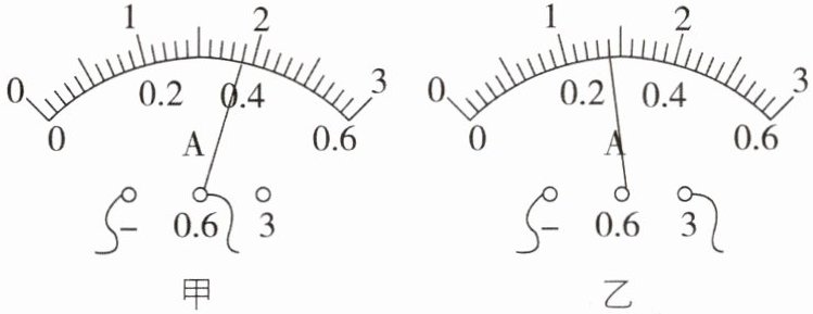 甲图:电流表选用0~0.6A量程,分度值0.02A,示数为0.38A。
