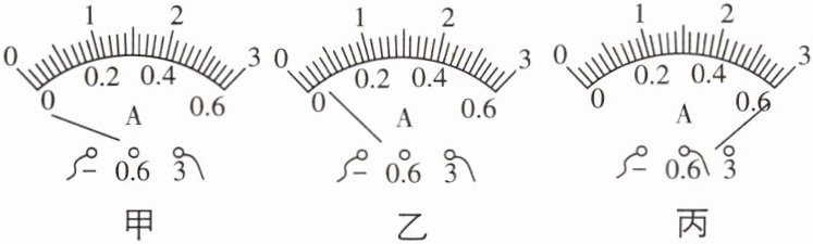 6 如图所示为甲、乙、丙三位同学使用已调零的电流表时出现的现象,请分别写出造成这些现象的原因。