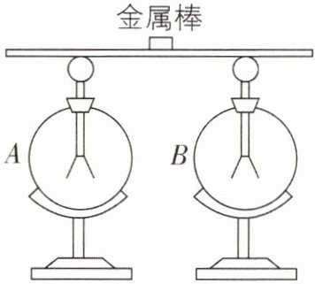 7 [中]如图所示,验电器A带正电荷,B带负电荷,用带有绝缘手柄的金属棒连接两验电器的金属球,则电子移动的方向及电流方向正确的是 (