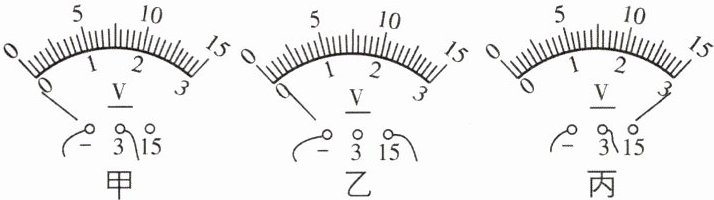 电压表的正、负接线柱接反了 电压表所选的量程过大 电压表所选的量程过小【解析】甲图出现的现象是:电压表的指针反向偏转,出现的问题是电压表的正、负接线柱接反了;乙图出现的现象是:电压表的指针偏转角度太小,出现的问题是电压表所选用的量程太大;丙图出现的现象是:电压表的指针偏转角度太大,超出了其最大测量值,出现的问题是电压表所选用的量程太小。