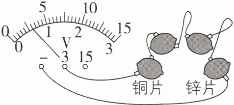 3 [2025 吉林长春期中]小明自制了一个水果电池,将水果电池与电压表连接后的情景如图所示。下列分析中不正确的是 (