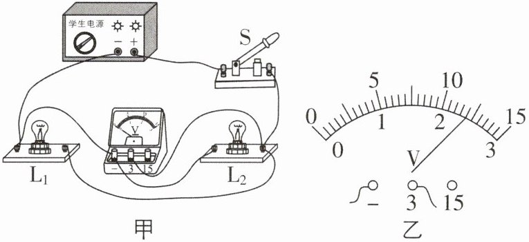 联,此时电压表示数如图乙所示,电压表测得 $ L_2 $ 两端的电压是2.4