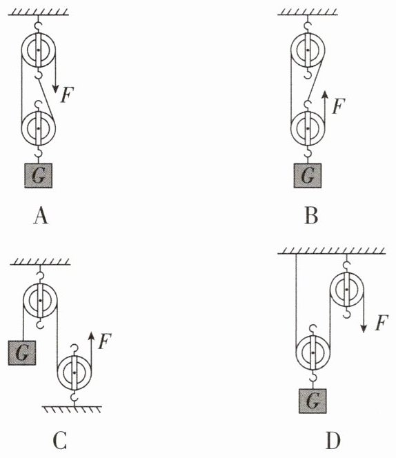 1 [2025 广东广州质检]如图所示,利用滑轮组匀速提升同一重物,若绳子自由端移动的距离均相等,下列选项中有用功最小的是(