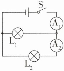 5.C 【解析】由电路图可知,两灯泡并联,电流表A₂测L₂支路的电流,A₁测干路电流。当灯L₁的灯丝突然被烧断后,电路变为L₂的简单电路,两电流表都测通过L₂的电流;因并联电路独立工作、互不影响,所以电流表A₂的示数不变,由于并联电路干路电流等于各支路电流之和,所以电流表A₁的示数变小,故C正确。故选C。