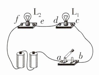 2 [2025江苏南京质检,中]如图所示电路,开关闭合后,发现$L_1、$$L_2$都不亮。小明将开关、$L_1$和$L_2$的接线柱分别用a、b、c、d、e、f表示,用一电压表检测电路故障,表中是他记录的检测数据。若电路中有两处故障,则故障的原因可能是(