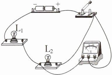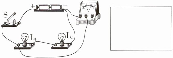 (2)两灯泡串联,开关控制整个电路,电压表测$L_{2}$两端电压。