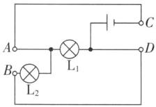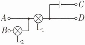 8[中]如图所示,A、B、C、D是四个接线柱,要使$L_1、$$L_2$并联,应用导线分别连接______两接线柱和连接______两接线柱。