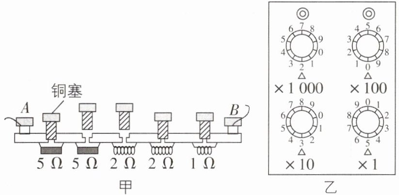 Ω,图甲中 A、B 两个接线柱之间的电阻值是7