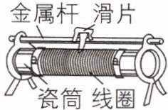 C 【解析】滑片与金属杆之间是导电的,故 A 错误;陶瓷是绝缘体,瓷筒与线圈之间是绝缘的,故 B 错误;滑片与线圈之间不能绝缘,瓷筒上缠绕的合金线和滑片接触的位置没有绝缘,故 C 正确,D 错误。