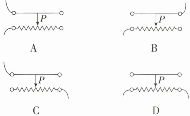 4 [2025 四川内江期中]如图所示,当滑片 P 向左滑动时,使滑动变阻器连入电路中的电阻最大且阻值不改变的接法是 (