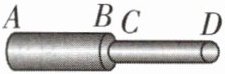 D 【解析】由题知铁棒 AB 和 CD 由同种材料制成且长度相同,由图可知,铁棒 AB 的横截面积比铁棒 CD 的横截面积大,由导体的材料和长度相同时,导体的横截面积越大,电阻越小可知 R_{AB}<R_{CD};因为两铁棒串联,所以通过两铁棒的电流相等,即 I_{AB}=I_{CD}。故选 D。