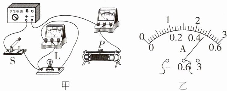 (1)请用笔画线代替导线,将图甲的实物图连接完整(要求:滑动变阻器滑片P向右移动时灯泡变亮)。