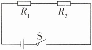 A 【解析】由图可知,$R_{1}$与$R_{2}$串联,串联电路中电流处处相等,故 A 正确,B 错误;$R_{1}$、$R_{2}$两端的电压之比$\frac {U_{1}}{U_{2}}=\frac {I_{1}R_{1}}{I_{2}R_{2}}=\frac {R_{1}}{R_{2}}=\frac {5Ω}{10Ω}=\frac {1}{2}$,故C、D 错误。