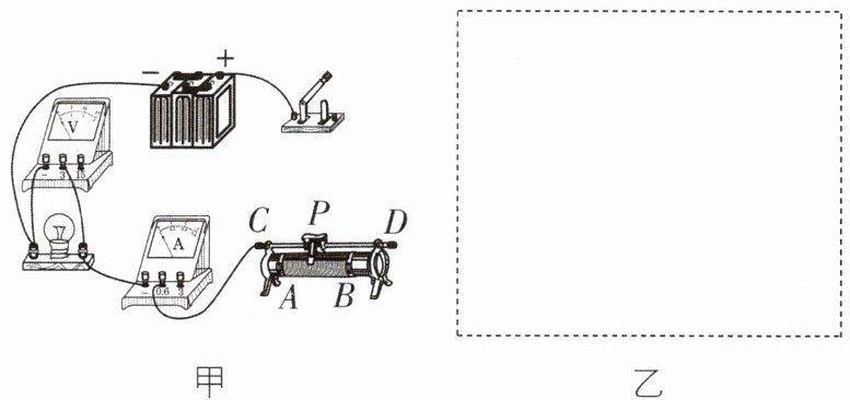 (1)请用笔画线代替导线,将图甲的实物图连接完整,并在图乙的虚线框内画出与图甲相对应的电路图(要求滑动变阻器的滑片向右滑动时,小灯泡变亮,导线不允许交叉)。