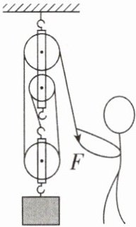 2 [2023四川眉山中考,中]如图所示,工人用滑轮组提升重物,已知重物重力$G_{物}= 1000N$,动滑轮重力$G_{动}= 200N$。在工人用力F作用下,重物匀速上升,30s达到规定高度6m处。不计绳重和机械之间的摩擦。