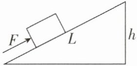 4 [2023湖北荆州中考,中]以“‘荆歌’铁马,奔向未来”为主题的2023荆州马拉松3月26日在荆州体育中心鸣枪起跑。在开赛场地建设过程中,工人利用长度$L= 3m$的斜面把质量为240kg的重物匀速推到$h= 1m$高处,如图所示,工人所用推力$F= 1000N$。g取10N/kg。