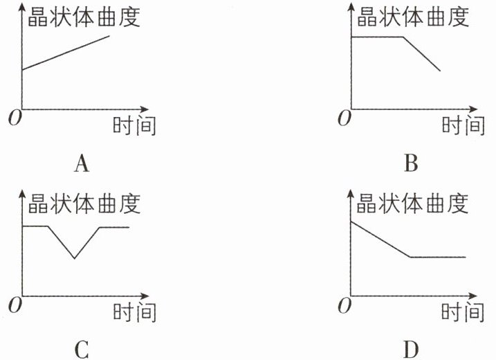 A 【解析】人看近处物体时,晶状体曲度变大;看远处物体时,晶状体曲度变小。该同学看到汽车由远及近行驶,其晶状体曲度由小变大,A符合题意。