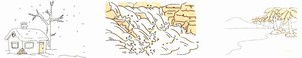 《鸟的天堂》中,作者用动态描写展现了群鸟在大榕树上飞鸣的自由和欢乐,给人美的享受。请你观察下面的三幅图,任选一幅发挥想象,照样子把画面写具体。注意写出景物的动态美。