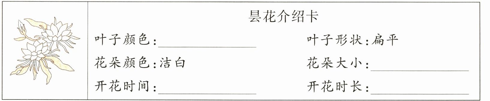 10. 语文要素 作者观察得真细致,根据短文补充昙花的介绍卡。(每空1分,共4分)