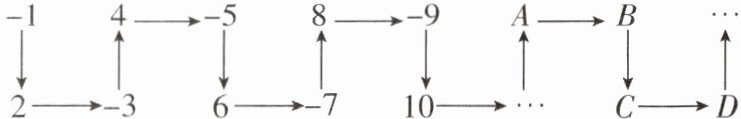 (2)观察发现,向下箭头的上方是负数,下方是正数,向上箭头的下方是负数,上方是正数,所以B和D所在位置的数是负数.