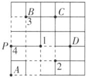 (3)快递员的行走路线和到达的位置如图中虚线和数字所示,图中P的位置即为所求.