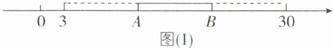 (1)由题意得三根这样的木棒长为30-3=27,则这根木棒的长为27÷3=9,所以点 B 表示的数是3+9+9=21,点 A 表示的数是3+9=12.故答案为9,12,21.