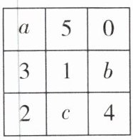 7 [2024 广东广州期末]如图,小明将 -3, -2, -1, 0, 1, 2, 3, 4, 5 分别填入九个空格内,使每行、每列、每条对角线上的三个数字之和相等,现在 a,b,c 分别表示其中一个数字,则 $a - b - c =$ ______.