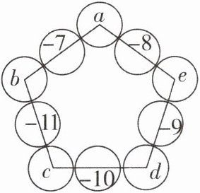 4 [2025浙江台州期中,中]如图,已知a,b,c,d,e为正整数,且正五边形中每条边上三个数的和都等于-3,则$c^{2}+a^{2}-b-d-e= $____。